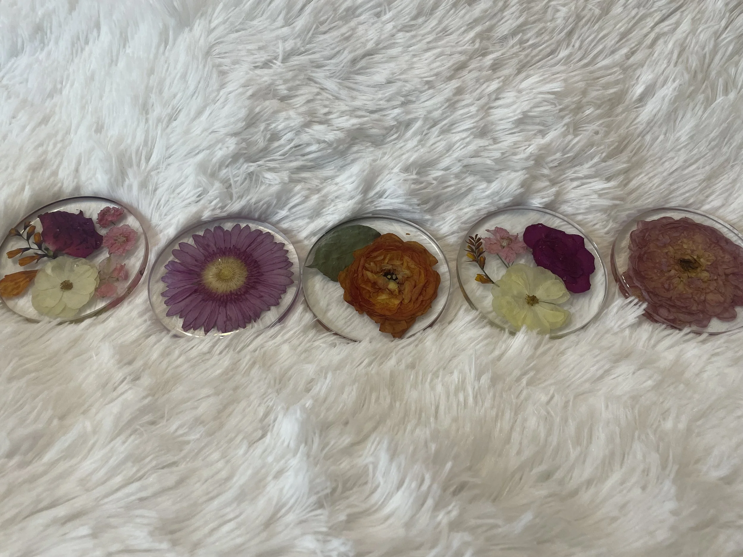 Let me first ask you a question... Don't you hate when you gift, receive or buy flowers for a special occasion and after a few weeks they are already dead?! Yeah, I hate it too. That is why flower preservation is such a special process! We take your memorable flowers from any life event (wedding, funeral, engagement, anniversary, etc.), and cast your flowers in resin to create one of a kind pieces for you to remember that special day for a lifetime!