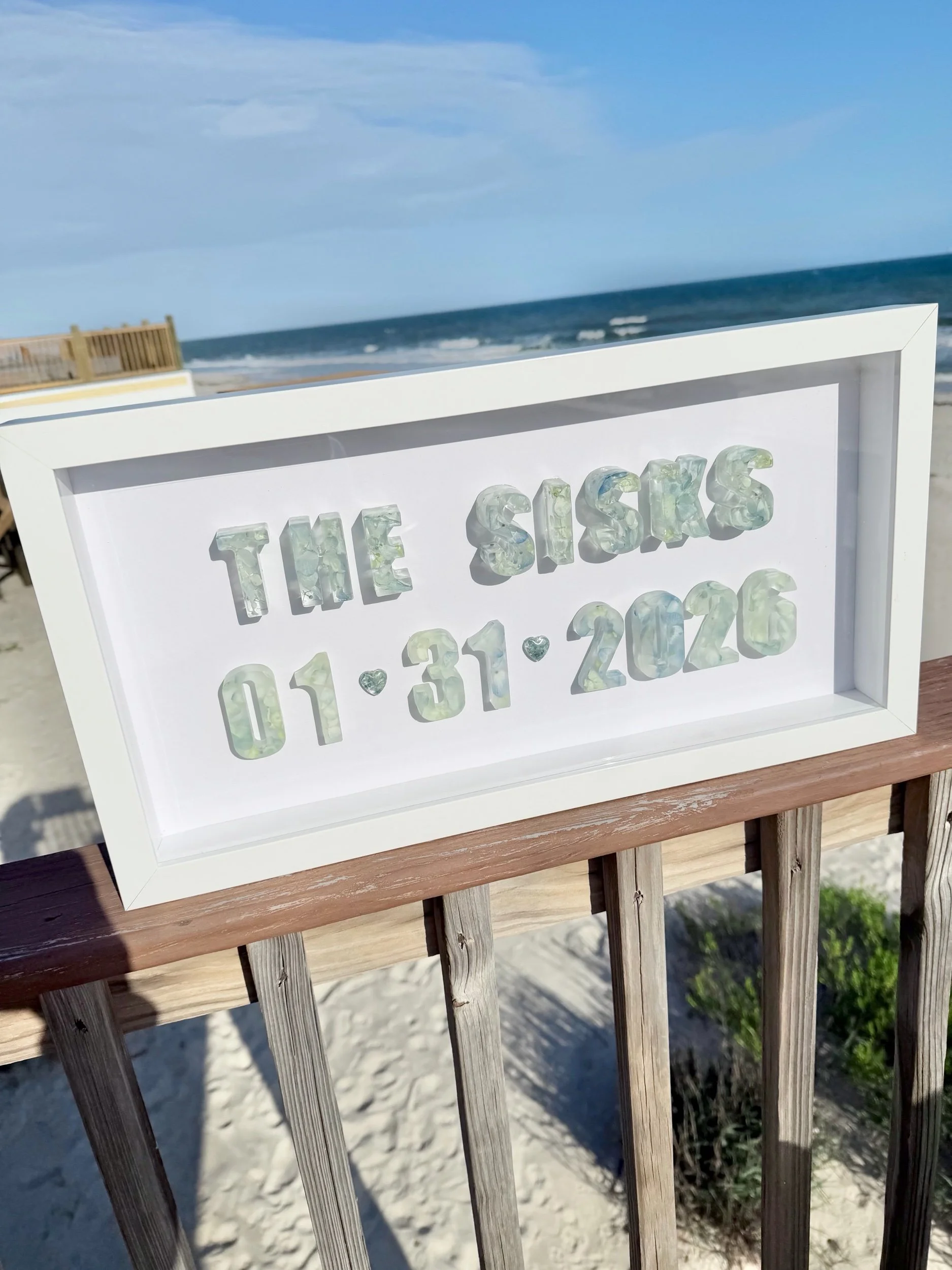 Preserve the names and dates that matter most with a custom floral preservation shadow box. Whether it’s your married last name and wedding date, a child’s name and birthdate, or another meaningful moment, each piece features letters handcrafted from your preserved flowers for a timeless, sentimental display.